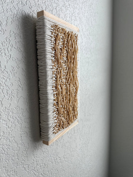 A woven tile wall hanging will add texture and dimension to your home décor. Get yours today! This woven wall hanging can be added to your gallery art wall or leaned on a bookshelf.